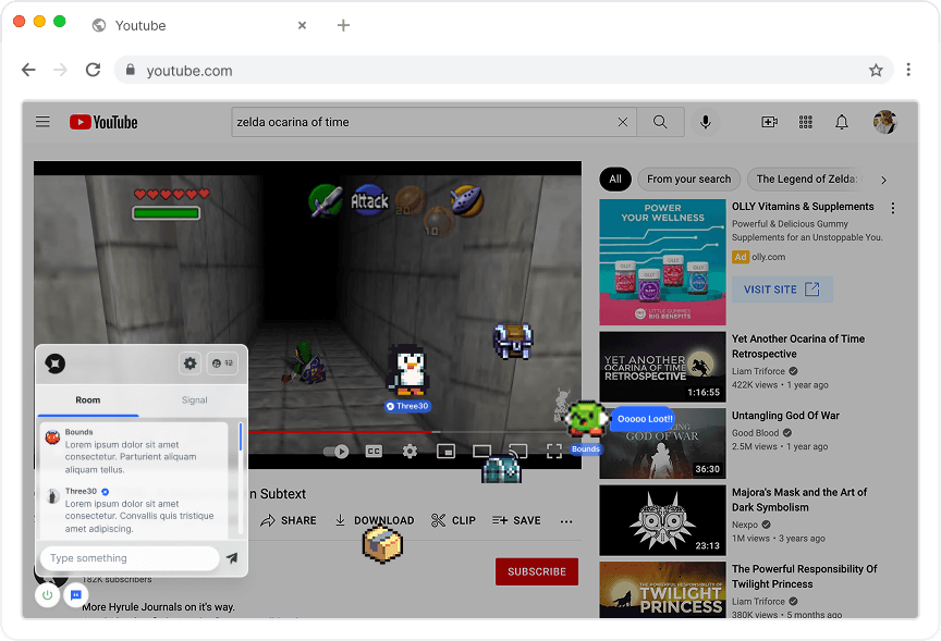 Moonbounce is a Chrome extension that turns the internet into a multiplayer game. You can see people on the same site, chat, collect loot, customize a character, do quests, and explore with friends.